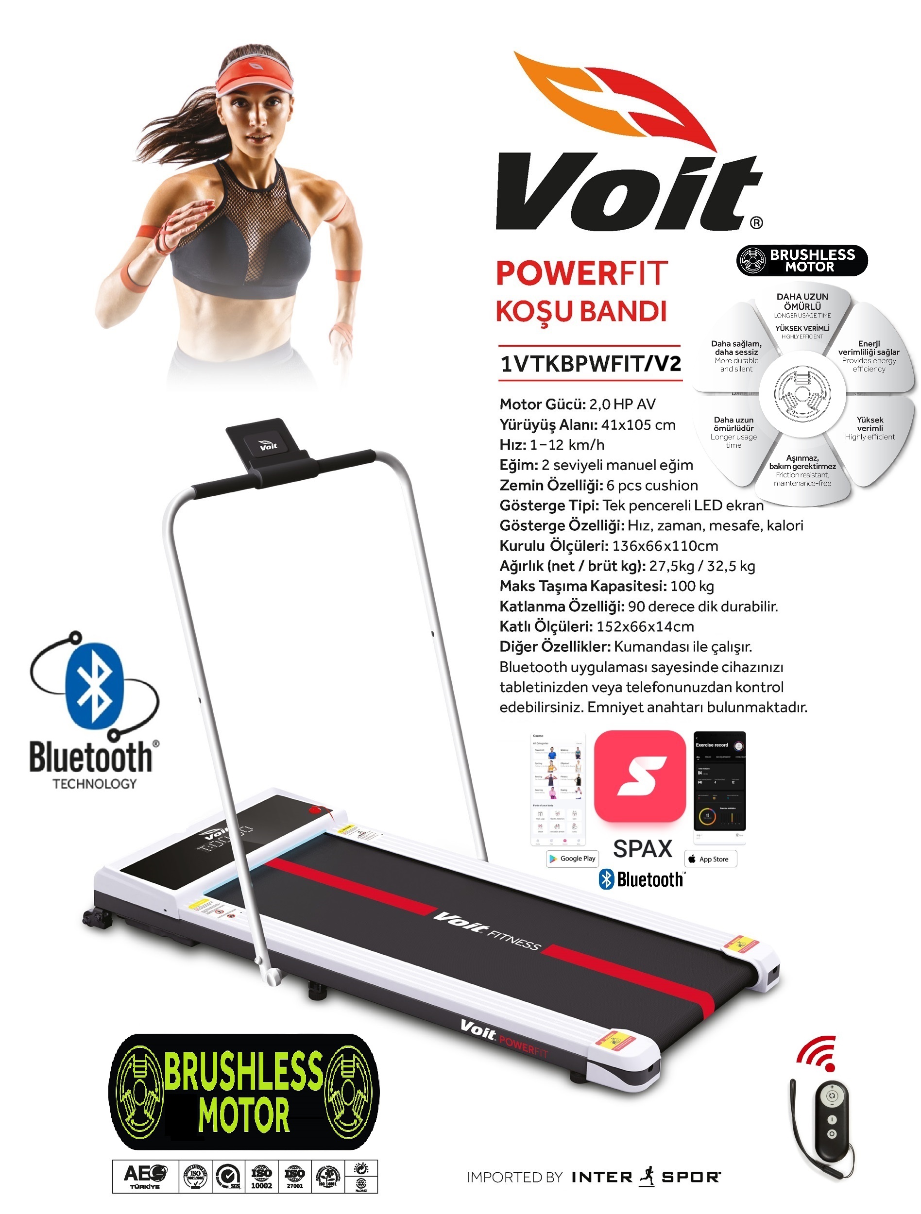 Powerfit 12km Hız Işıklı-Manuel Eğimli-Uzaktan Kumandalı-Bluetooth'lu-Katlanabilir Koşu Bandı
